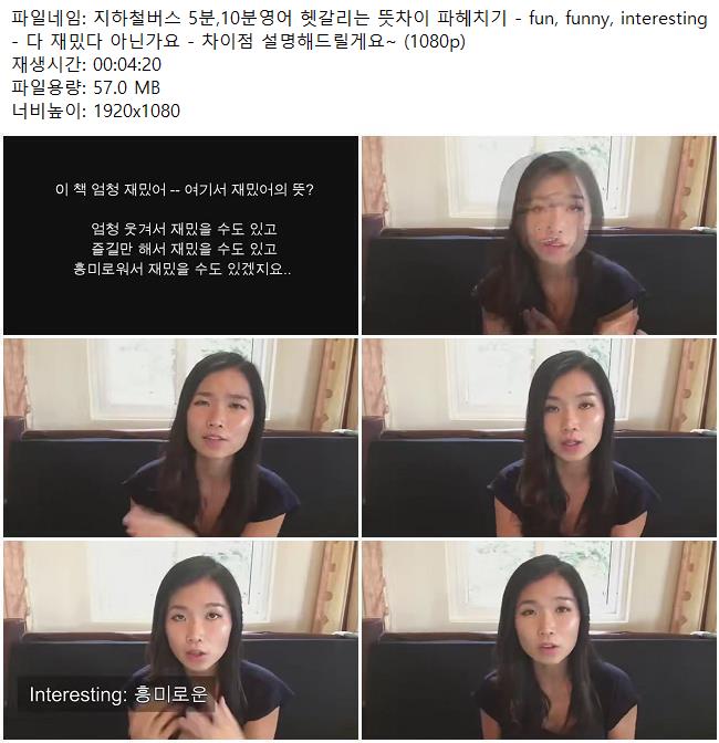 애니메이션 애니메이션 지하철버스 5분,10분영어 헷갈리는 뜻차이 파헤치기 - fun, funny,.. 쿠무 2026.04.24 6,103 359 다운로드 추천 359 북마크 공유 다운로드 파일 · 1개 지하철버스 5분,10분영어 헷갈리는 뜻차이 파헤치기 - fun, funny, inter.. FILE 57.0M 다운로드 TAGS #지하철버스 #5분 #10분영어 #헷갈리는 #뜻차이
