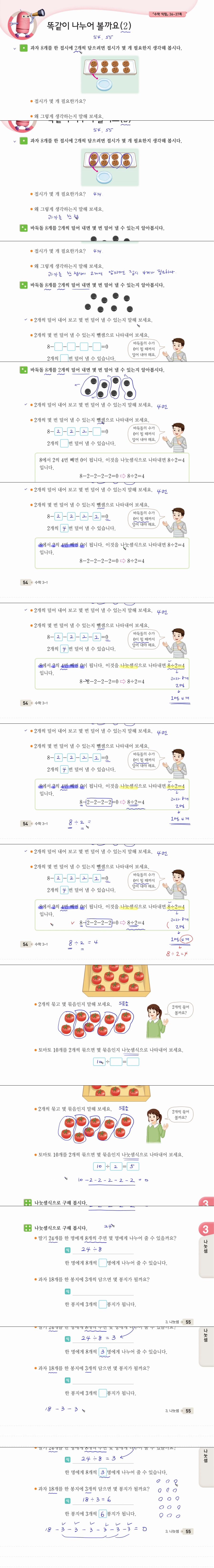 애니메이션 애니메이션 초등 3학년 1학기 수학 3단원 나눗셈 3차시 54, 55쪽 - 똑같이 나.. jibori 2026.04.24 7,359 296 다운로드 추천 296 북마크 공유 다운로드 파일 · 1개 초등 3학년 1학기 수학 3단원 나눗셈 3차시 54, 55쪽 - 똑같이 나누어 볼.. FILE 19.6M 다운로드 TAGS #초등 #3학년 #1학기 #수학 #3단원
