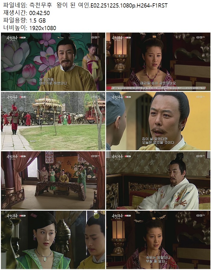 드라마 드라마 측천무후 왕이 된 여인.E02.251225.1080p.H264-F1RST 디스사랑 2026.04.24 4,875 323 다운로드 추천 323 북마크 공유 다운로드 파일 · 1개 측천무후 왕이 된 여인.E02.251225.1080p.H264-F1RST.mp4 FILE 1.5G 다운로드 TAGS #측천무후 #왕이 #여인 #E02 #H264