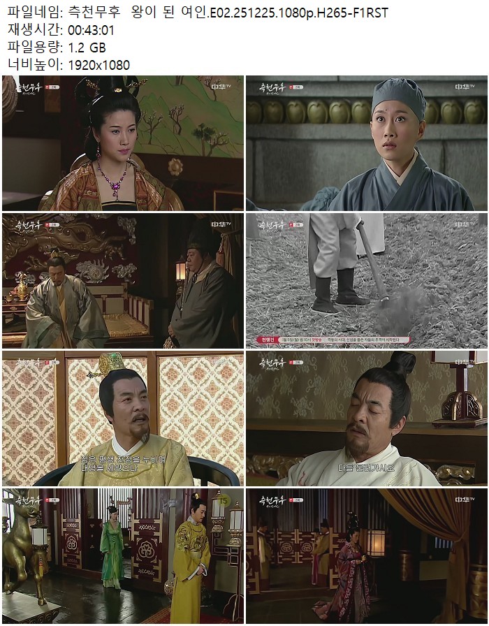 드라마 드라마 측천무후 왕이 된 여인.E02.251225.1080p.H265-F1RST 디스사랑 2026.04.24 4,215 321 다운로드 추천 321 북마크 공유 다운로드 파일 · 1개 측천무후 왕이 된 여인.E02.251225.1080p.H265-F1RST.mp4 FILE 1.2G 다운로드 TAGS #측천무후 #왕이 #여인 #E02 #H265
