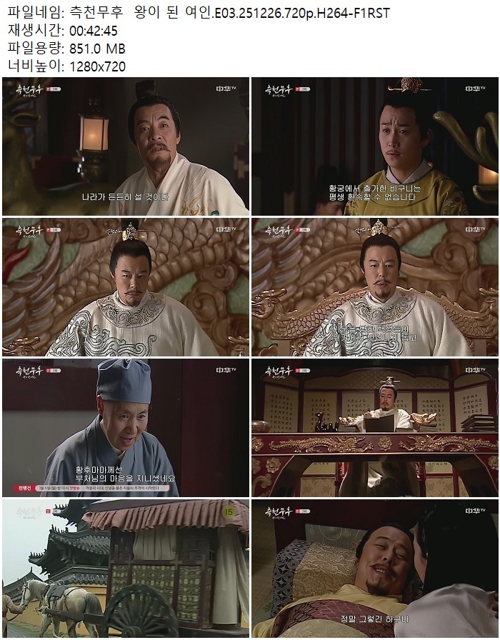 드라마 드라마 측천무후 왕이 된 여인.E03.251226.720p.H264-F1RST 디스사랑 2026.04.24 3,731 251 다운로드 추천 251 북마크 공유 다운로드 파일 · 1개 측천무후 왕이 된 여인.E03.251226.720p.H264-F1RST.mp4 FILE 851.0M 다운로드 TAGS #측천무후 #왕이 #여인 #E03 #H264