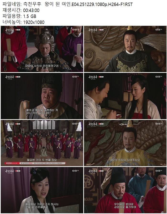 드라마 드라마 측천무후 왕이 된 여인.E04.251229.1080p.H264-F1RST 디스사랑 2026.04.24 3,569 332 다운로드 추천 332 북마크 공유 다운로드 파일 · 1개 측천무후 왕이 된 여인.E04.251229.1080p.H264-F1RST.mp4 FILE 1.5G 다운로드 TAGS #측천무후 #왕이 #여인 #E04 #H264