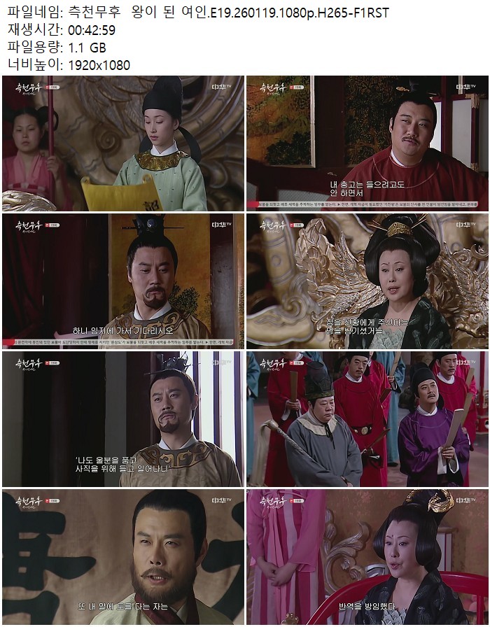 드라마 드라마 측천무후 왕이 된 여인.E19.260119.1080p.H265-F1RST 디스사랑 2026.04.24 7,325 267 다운로드 추천 267 북마크 공유 다운로드 파일 · 1개 측천무후 왕이 된 여인.E19.260119.1080p.H265-F1RST.mp4 FILE 1.1G 다운로드 TAGS #측천무후 #왕이 #여인 #E19 #H265