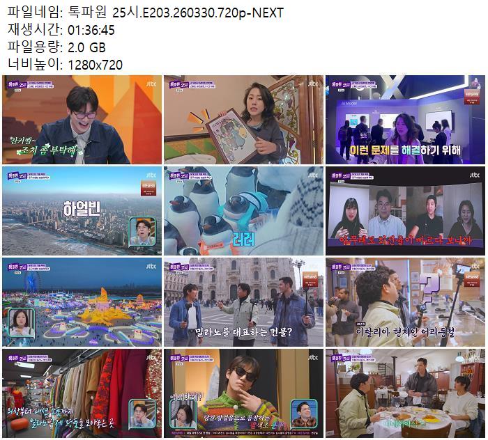 방송/동영상 방송/동영상 톡파원 25시.E203.260330.720p-NEXT zndhkgkgk 2026.04.24 7,751 395 다운로드 추천 395 북마크 공유 다운로드 파일 · 1개 톡파원 25시.E203.260330.720p-NEXT.mp4 FILE 2.0G 다운로드 TAGS #톡파원 #25시 #E203 #NEXT