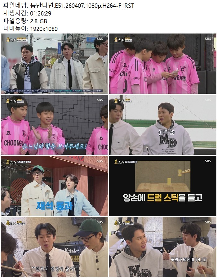 방송/동영상 방송/동영상 틈만나면.E51.260407.1080p.H264 디스사랑 2026.04.24 3,566 213 다운로드 추천 213 북마크 공유 다운로드 파일 · 1개 틈만나면.E51.260407.1080p.H264-F1RST.mp4 FILE 2.8G 다운로드 TAGS #틈만나면 #E51 #H264 #F1RST