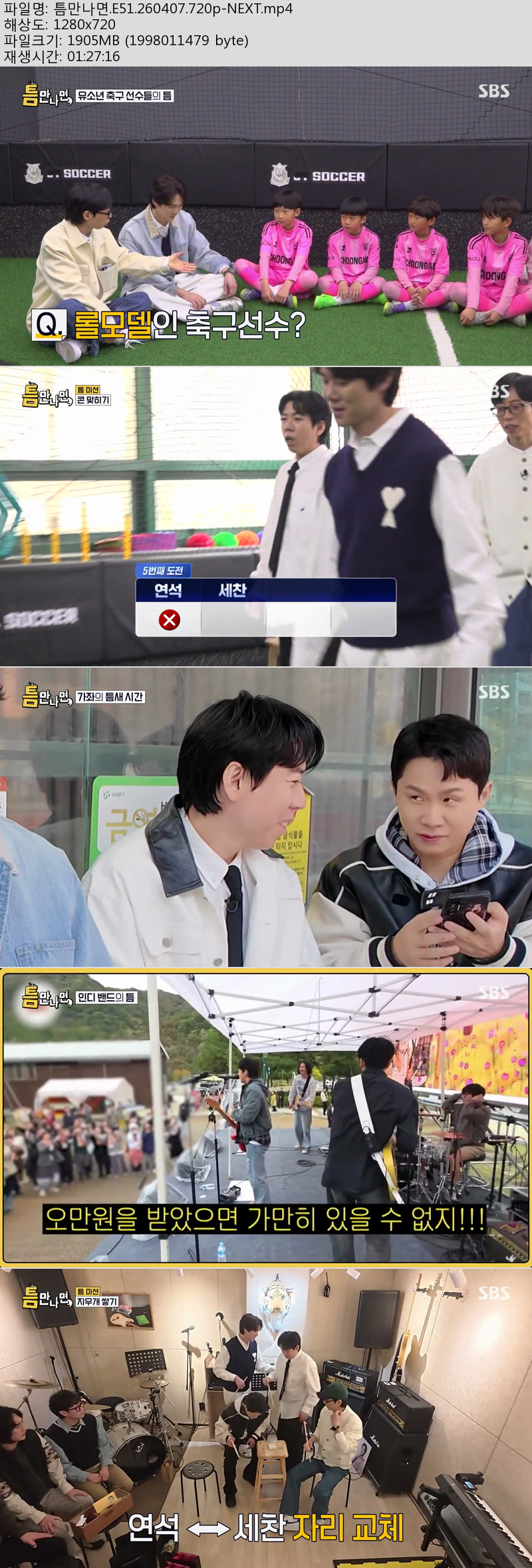방송/동영상 방송/동영상 틈만나면.E51.260407.720p-NEXT 그레이트캣 2026.04.24 7,217 430 다운로드 추천 430 북마크 공유 다운로드 파일 · 1개 틈만나면.E51.260407.720p-NEXT.mp4 FILE 1.9G 다운로드 TAGS #틈만나면 #E51 #NEXT