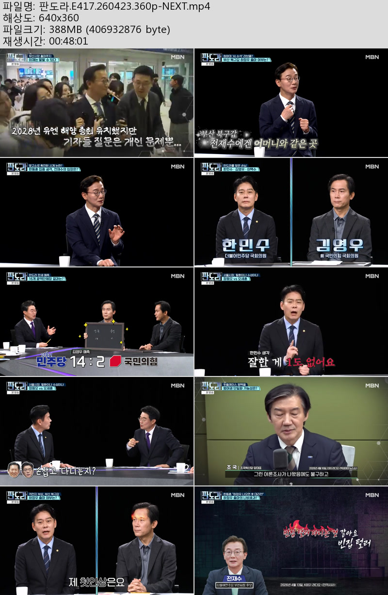 방송/동영상 방송/동영상 판도라.E417.260423.360p-NEXT 우야쓰꼬 2026.04.23 4,308 208 다운로드 추천 208 북마크 공유 다운로드 파일 · 1개 판도라.E417.260423.360p-NEXT.mp4 FILE 388.1M 다운로드 TAGS #판도라 #E417 #NEXT