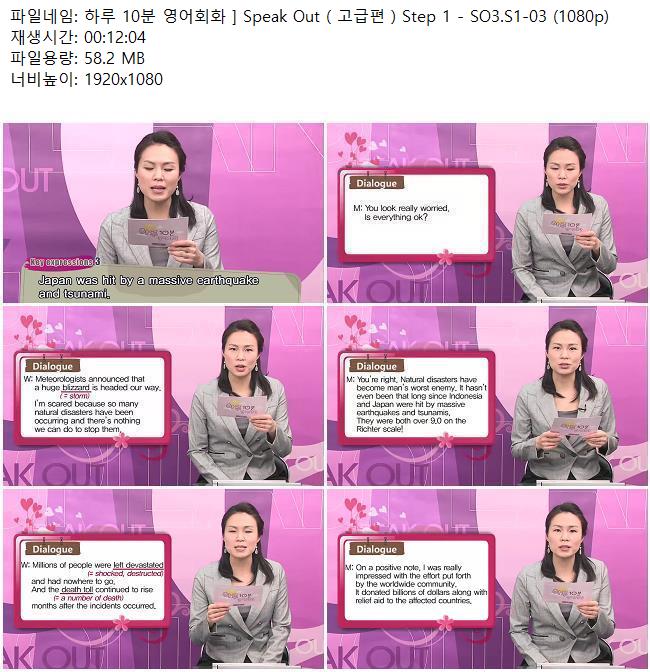 애니메이션 애니메이션 하루 10분 영어회화 ] Speak Out ( 고급편 ) Step 1 - SO3.S1-03 (.. 쿠무 2026.04.24 6,729 440 다운로드 추천 440 북마크 공유 다운로드 파일 · 1개 하루 10분 영어회화 ] Speak Out ( 고급편 ) Step 1 - SO3.S1-03 (1080p).. FILE 58.2M 다운로드 TAGS #하루 #10분 #영어회화 #Speak #Out