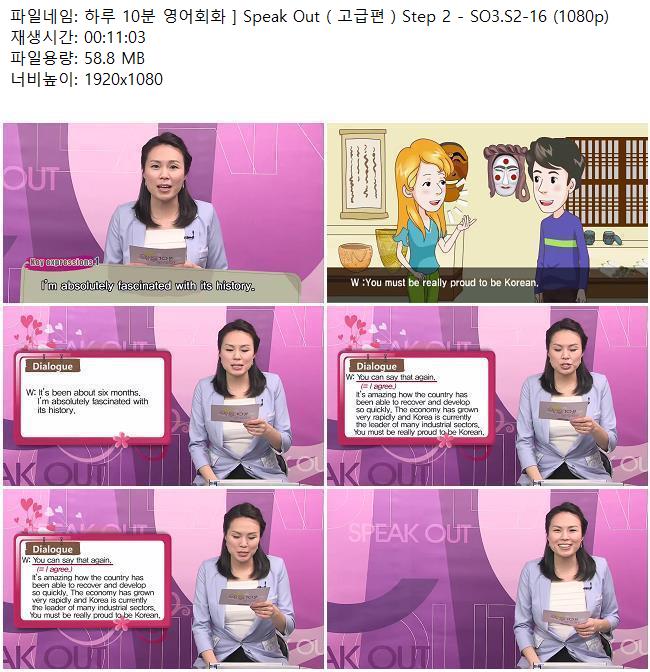 애니메이션 애니메이션 하루 10분 영어회화 ] Speak Out ( 고급편 ) Step 2 - SO3.S2-16 (.. 쿠무 2026.04.24 4,946 223 다운로드 추천 223 북마크 공유 다운로드 파일 · 1개 하루 10분 영어회화 ] Speak Out ( 고급편 ) Step 2 - SO3.S2-16 (1080p).. FILE 58.8M 다운로드 TAGS #하루 #10분 #영어회화 #Speak #Out