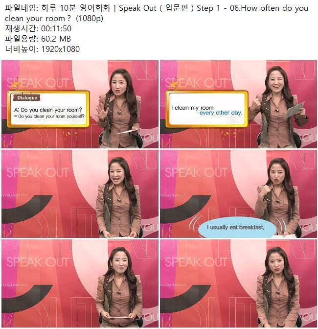 애니메이션 애니메이션 하루 10분 영어회화 ] Speak Out ( 입문편 ) Step 1 - 06.How ofte.. 쿠무 2026.04.24 4,413 478 다운로드 추천 478 북마크 공유 다운로드 파일 · 1개 하루 10분 영어회화 ] Speak Out ( 입문편 ) Step 1 - 06.How often do y.. FILE 60.2M 다운로드 TAGS #하루 #10분 #영어회화 #Speak #Out