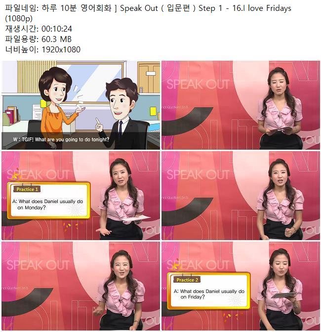 애니메이션 애니메이션 하루 10분 영어회화 ] Speak Out ( 입문편 ) Step 1 - 16.I love F.. 쿠무 2026.04.24 6,803 294 다운로드 추천 294 북마크 공유 다운로드 파일 · 1개 하루 10분 영어회화 ] Speak Out ( 입문편 ) Step 1 - 16.I love Fridays.. FILE 60.3M 다운로드 TAGS #하루 #10분 #영어회화 #Speak #Out