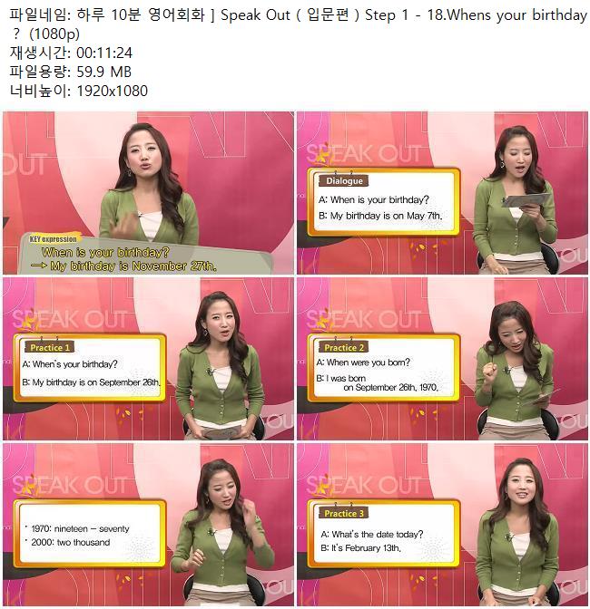 애니메이션 애니메이션 하루 10분 영어회화 ] Speak Out ( 입문편 ) Step 1 - 18.Whens yo.. 쿠무 2026.04.24 6,079 398 다운로드 추천 398 북마크 공유 다운로드 파일 · 1개 하루 10분 영어회화 ] Speak Out ( 입문편 ) Step 1 - 18.Whens your bir.. FILE 59.9M 다운로드 TAGS #하루 #10분 #영어회화 #Speak #Out