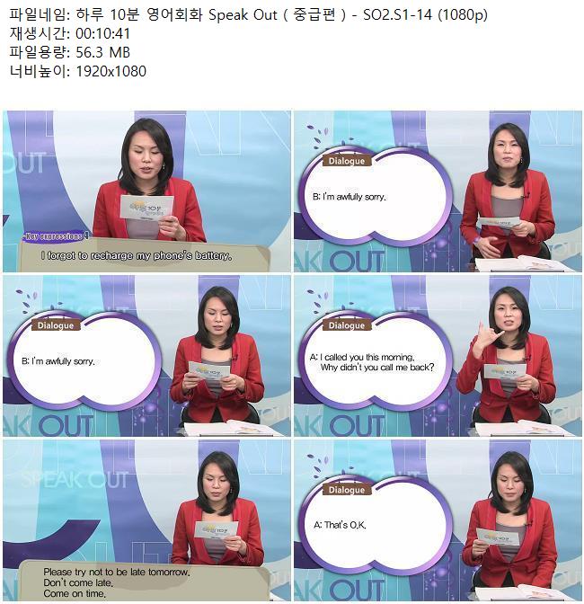 애니메이션 애니메이션 하루 10분 영어회화 Speak Out ( 중급편 ) - SO2.S1-14 (1080p) 쿠무 2026.04.24 7,469 362 다운로드 추천 362 북마크 공유 다운로드 파일 · 1개 하루 10분 영어회화 Speak Out ( 중급편 ) - SO2.S1-14 (1080p).mkv FILE 56.3M 다운로드 TAGS #하루 #10분 #영어회화 #Speak #Out