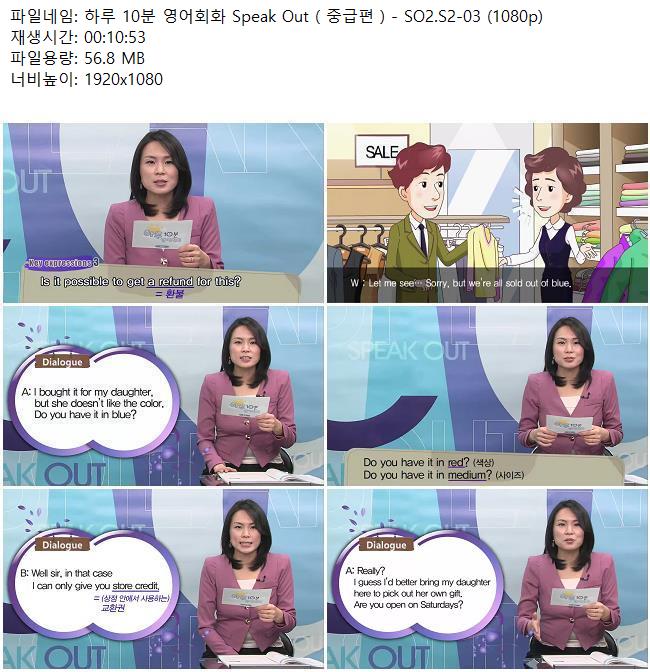 애니메이션 애니메이션 하루 10분 영어회화 Speak Out ( 중급편 ) - SO2.S2-03 (1080p) 쿠무 2026.04.24 4,953 233 다운로드 추천 233 북마크 공유 다운로드 파일 · 1개 하루 10분 영어회화 Speak Out ( 중급편 ) - SO2.S2-03 (1080p).mkv FILE 56.8M 다운로드 TAGS #하루 #10분 #영어회화 #Speak #Out