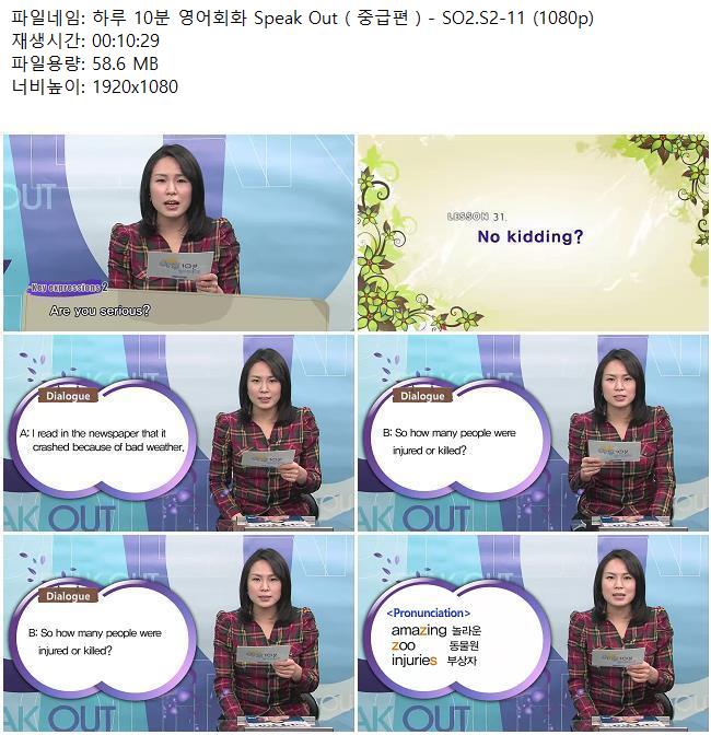 애니메이션 애니메이션 하루 10분 영어회화 Speak Out ( 중급편 ) - SO2.S2-11 (1080p) 쿠무 2026.04.24 5,106 299 다운로드 추천 299 북마크 공유 다운로드 파일 · 1개 하루 10분 영어회화 Speak Out ( 중급편 ) - SO2.S2-11 (1080p).mkv FILE 58.6M 다운로드 TAGS #하루 #10분 #영어회화 #Speak #Out
