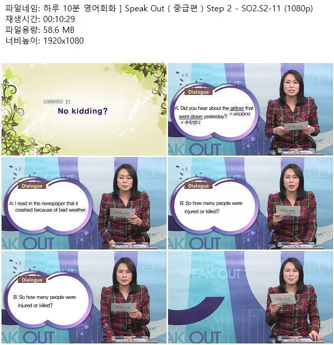 애니메이션 애니메이션 하루 10분 영어회화 ] Speak Out ( 중급편 ) Step 2 - SO2.S2-11 (.. 쿠무 2026.04.24 4,095 496 다운로드 추천 496 북마크 공유 다운로드 파일 · 1개 하루 10분 영어회화 ] Speak Out ( 중급편 ) Step 2 - SO2.S2-11 (1080p).. FILE 58.6M 다운로드 TAGS #하루 #10분 #영어회화 #Speak #Out