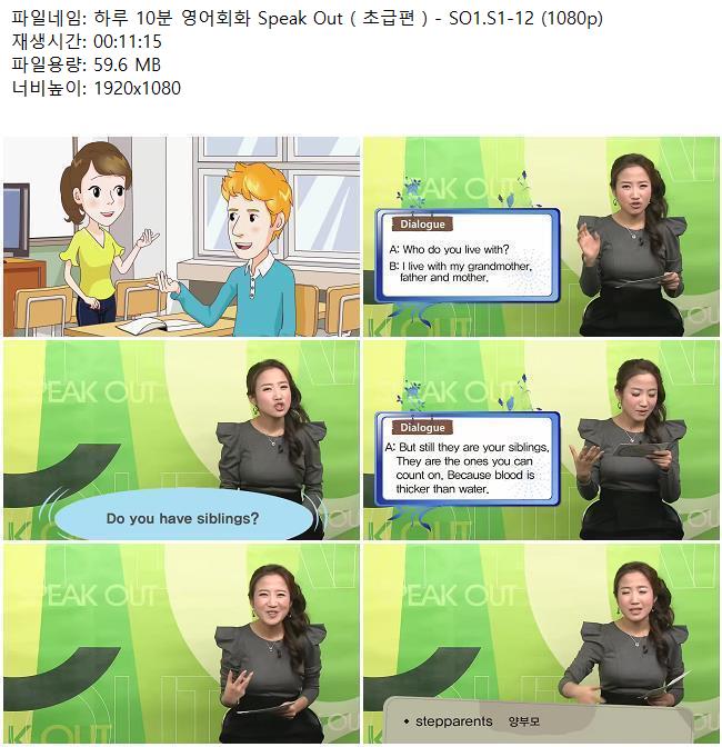 애니메이션 애니메이션 하루 10분 영어회화 Speak Out ( 초급편 ) - SO1.S1-12 (1080p) 쿠무 2026.04.24 3,452 228 다운로드 추천 228 북마크 공유 다운로드 파일 · 1개 하루 10분 영어회화 Speak Out ( 초급편 ) - SO1.S1-12 (1080p).mkv FILE 59.6M 다운로드 TAGS #하루 #10분 #영어회화 #Speak #Out