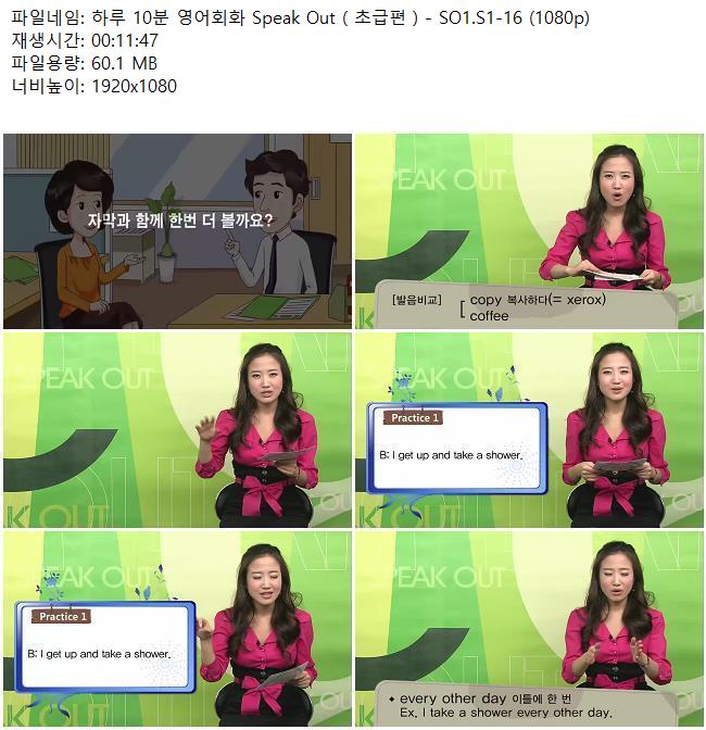 애니메이션 애니메이션 하루 10분 영어회화 Speak Out ( 초급편 ) - SO1.S1-16 (1080p) 쿠무 2026.04.24 3,975 419 다운로드 추천 419 북마크 공유 다운로드 파일 · 1개 하루 10분 영어회화 Speak Out ( 초급편 ) - SO1.S1-16 (1080p).mkv FILE 60.1M 다운로드 TAGS #하루 #10분 #영어회화 #Speak #Out