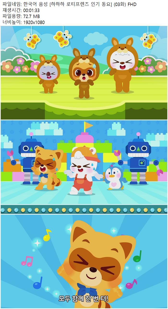 게임 게임 한국어 음성 [하하하 로티프렌즈 인기 동요] (03화) FHD kta01 2026.04.24 7,385 394 다운로드 추천 394 북마크 공유 다운로드 파일 · 1개 한국어 음성 [하하하 로티프렌즈 인기 동요] (03화) FHD FILE 72.7M 다운로드 TAGS #한국어 #음성 #하하하 #로티프렌즈 #인기