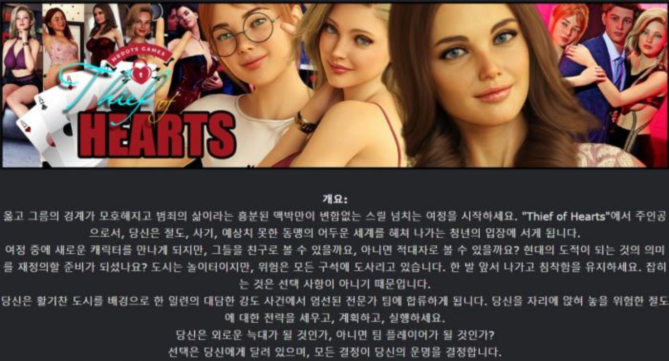 도서 도서 [한글.렌파이.남주.밀프.업뎃]Thief of Hearts 0.0.6.zip nksmhsm 2026.04.25 7,340 445 다운로드 추천 445 북마크 공유 다운로드 파일 · 1개 [한글.렌파이.남주.밀프.업뎃]Thief of Hearts 0.0.6.zip.ezc FILE 1.7G 다운로드 TAGS #한글 #렌파이 #남주 #밀프 #업뎃