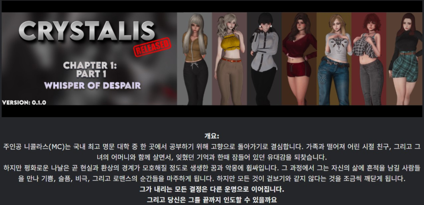 도서 도서 [한글.렌파이.남주.최신작]CrystaLis 0.1.0.zip nksmhsm 2026.04.25 4,814 393 다운로드 추천 393 북마크 공유 다운로드 파일 · 1개 [한글.렌파이.남주.최신작]CrystaLis 0.1.0.zip.ezc FILE 936.8M 다운로드 TAGS #한글 #렌파이 #남주 #최신작 #CrystaLis