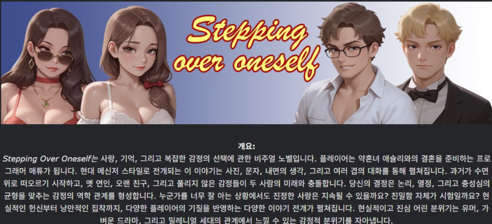 도서 도서 [한글.렌파이.남주.Ai.NTR.업뎃]Stepping Over Oneself 0.02.zip nksmhsm 2026.04.25 5,456 479 다운로드 추천 479 북마크 공유 다운로드 파일 · 1개 [한글.렌파이.남주.Ai.NTR.업뎃]Stepping Over Oneself 0.02.zip.ezc FILE 219.5M 다운로드 TAGS #한글 #렌파이 #남주 #Ai #NTR