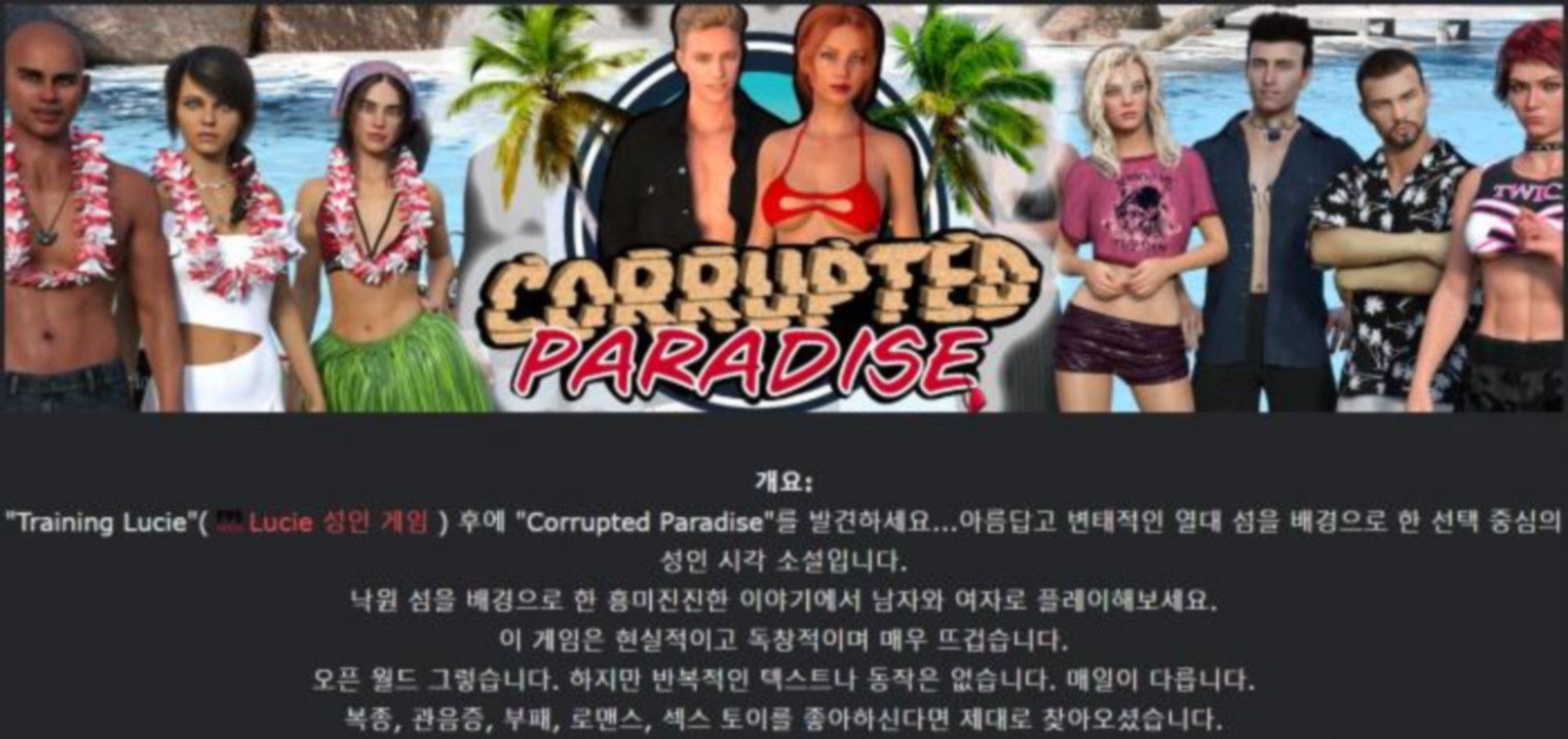 도서 도서 [한글.렌파이.지배.부패.업뎃.완결]Corrupted Paradise 0.99.zip nksmhsm 2026.04.25 6,652 496 다운로드 추천 496 북마크 공유 다운로드 파일 · 1개 [한글.렌파이.지배.부패.업뎃.완결]Corrupted Paradise 0.99.zip.ezc FILE 2.6G 다운로드 TAGS #한글 #렌파이 #지배 #부패 #업뎃