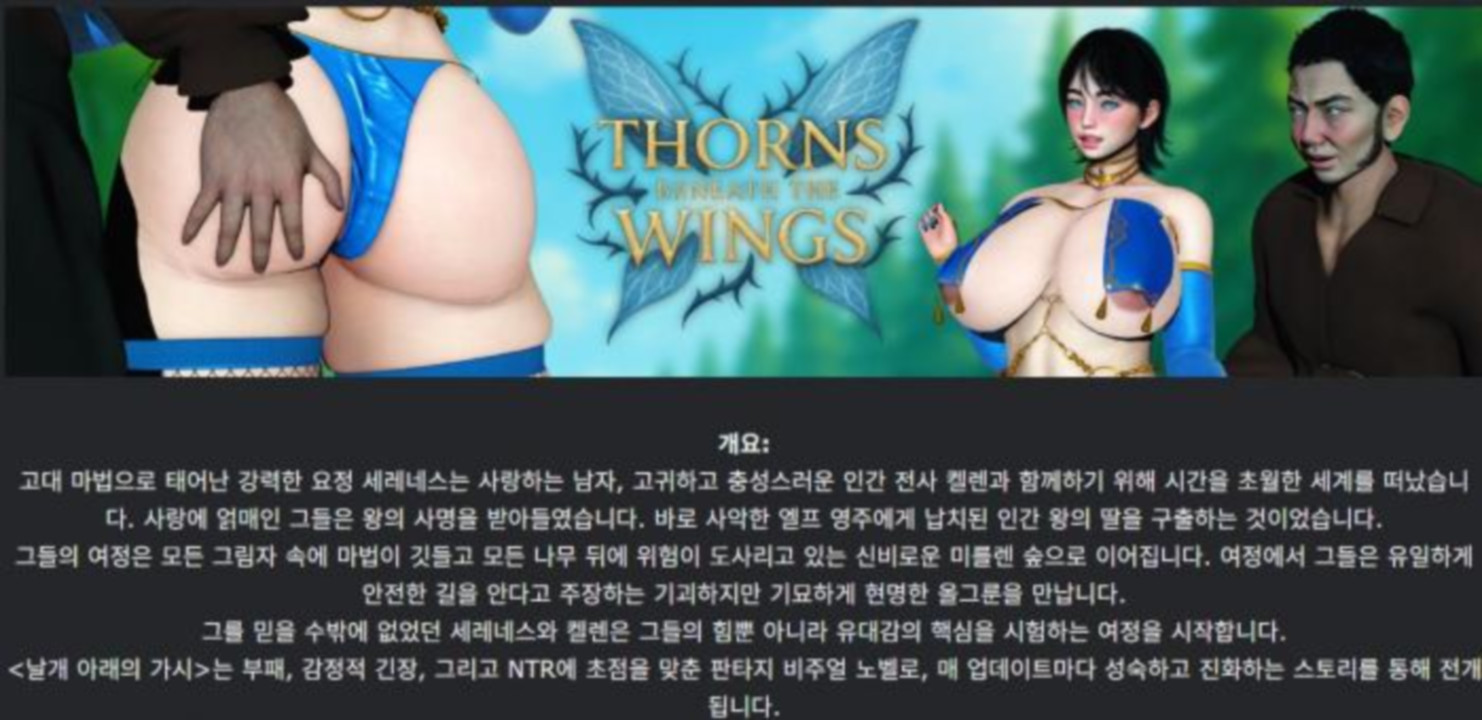도서 도서 [한글.렌파이.NTR.업뎃]Thorns Beneath the Wings 0.9.zip nksmhsm 2026.04.25 4,785 361 다운로드 추천 361 북마크 공유 다운로드 파일 · 1개 [한글.렌파이.NTR.업뎃]Thorns Beneath the Wings 0.9.zip.ezc FILE 1.9G 다운로드 TAGS #한글 #렌파이 #NTR #업뎃 #Thorns
