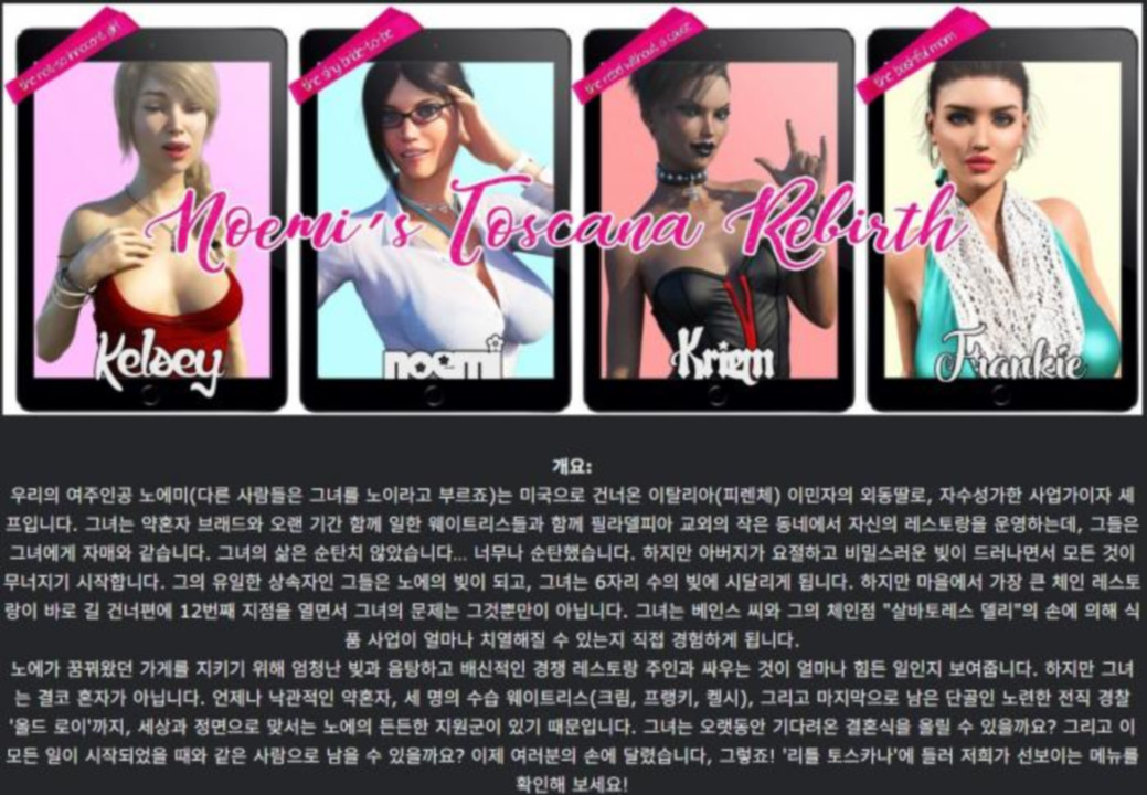 도서 도서 [한글.여주.NTR.업뎃]Noemi s Toscana Rebirth 0.25.zip nksmhsm 2026.04.25 3,419 473 다운로드 추천 473 북마크 공유 다운로드 파일 · 1개 [한글.여주.NTR.업뎃]Noemi s Toscana Rebirth 0.25.zip.ezc FILE 3.5G 다운로드 TAGS #한글 #여주 #NTR #업뎃 #Noemi