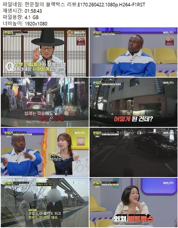 방송/동영상 방송/동영상 한문철의 블랙박스 리뷰.E170.260422.1080p.H264 디스사랑 2026.04.23 6,905 395 다운로드 추천 395 북마크 공유 다운로드 파일 · 1개 한문철의 블랙박스 리뷰.E170.260422.1080p.H264-F1RST.mp4 FILE 4.1G 다운로드 TAGS #한문철의 #블랙박스 #리뷰 #E170 #H264