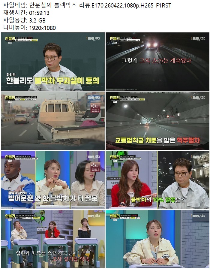 방송/동영상 방송/동영상 한문철의 블랙박스 리뷰.E170.260422.1080p.H265 디스사랑 2026.04.23 4,007 400 다운로드 추천 400 북마크 공유 다운로드 파일 · 1개 한문철의 블랙박스 리뷰.E170.260422.1080p.H265-F1RST.mp4 FILE 3.2G 다운로드 TAGS #한문철의 #블랙박스 #리뷰 #E170 #H265