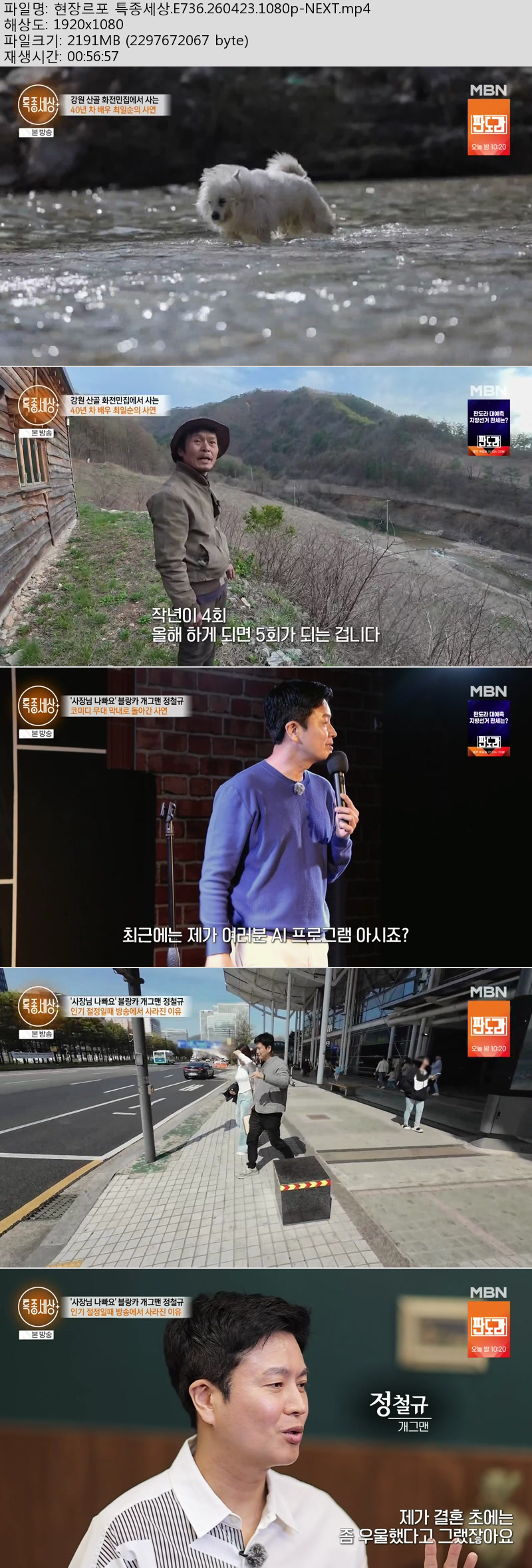방송/동영상 방송/동영상 현장르포 특종세상.E736.260423.1080p-NEXT 미아아빠 2026.04.23 5,232 357 다운로드 추천 357 북마크 공유 다운로드 파일 · 1개 현장르포 특종세상.E736.260423.1080p-NEXT.mp4 FILE 2.1G 다운로드 TAGS #현장르포 #특종세상 #E736 #NEXT