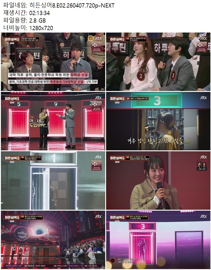 방송/동영상 방송/동영상 히든싱어8.E02.260407.720p-NEXT 디스사랑 2026.04.24 4,745 417 다운로드 추천 417 북마크 공유 다운로드 파일 · 1개 히든싱어8.E02.260407.720p-NEXT.mp4 FILE 2.8G 다운로드 TAGS #히든싱어8 #E02 #NEXT