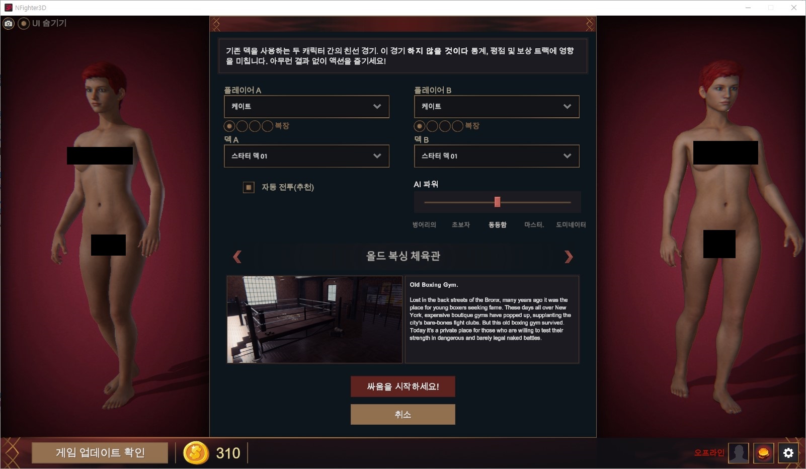 싸움에 관심 있으신가요? 바로 당신을 위한 게임입니다. M vs M, F vs F, M vs F, 어떤 조합이든 가능합니다.