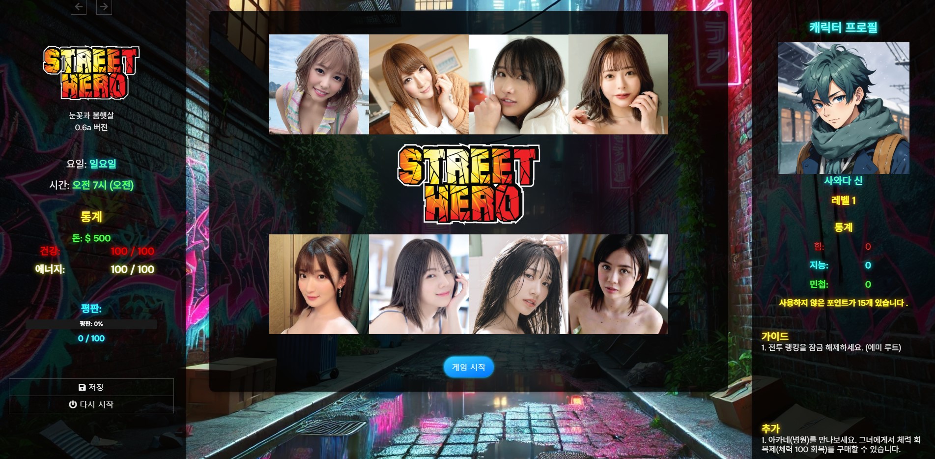 화면 왼쪽 아래 "저장하기"버튼을 클릭하고 디스크에서 로드를 누른후 세이브 파일을 불러오기 하면