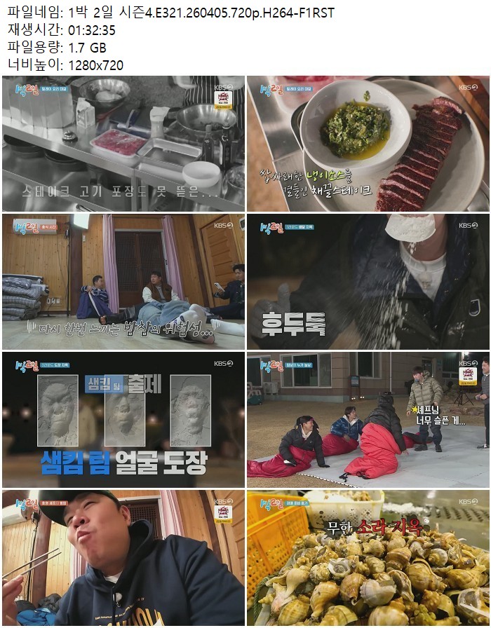 방송/동영상 방송/동영상 1박 2일 시즌4.E321.260405.720p.H264 디스사랑 2026.04.24 4,806 484 다운로드 추천 484 북마크 공유 다운로드 파일 · 1개 1박 2일 시즌4.E321.260405.720p.H264-F1RST.mp4 FILE 1.7G 다운로드 TAGS #1박 #2일 #시즌4 #E321 #H264
