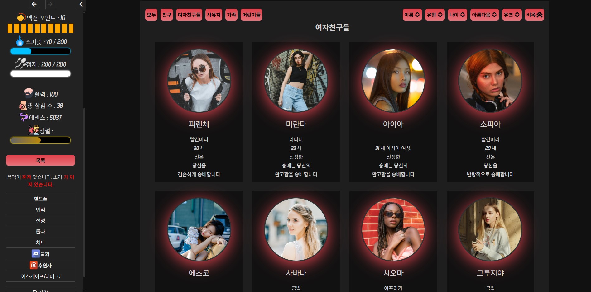 + 친밀도 50 이상 여성