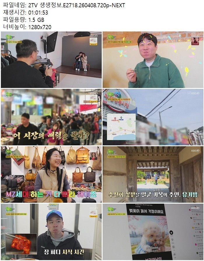 방송/동영상 방송/동영상 2TV 생생정보.E2718.260408.720p-NEXT 디스사랑 2026.04.24 5,751 402 다운로드 추천 402 북마크 공유 다운로드 파일 · 1개 2TV 생생정보.E2718.260408.720p-NEXT.mp4 FILE 1.5G 다운로드 TAGS #2TV #생생정보 #E2718 #NEXT