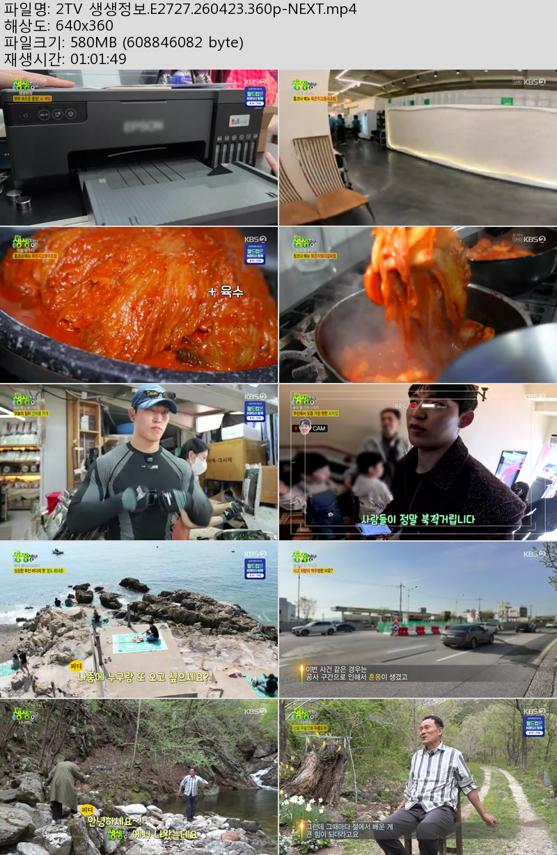 방송/동영상 방송/동영상 2TV 생생정보.E2727.260423.360p-NEXT 우야쓰꼬 2026.04.23 6,303 329 다운로드 추천 329 북마크 공유 다운로드 파일 · 1개 2TV 생생정보.E2727.260423.360p-NEXT.mp4 FILE 580.6M 다운로드 TAGS #2TV #생생정보 #E2727 #NEXT