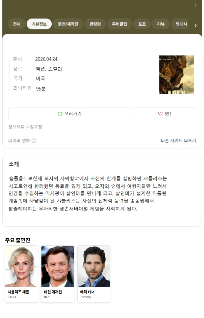 영화 영화 4월 써바이벌 재난액션 최신작 [ 생 존 설 계 ] 공식자막 초고화질.. rhdrlgod 2026.04.25 7,327 357 다운로드 추천 357 북마크 공유 다운로드 파일 · 1개 dkljkldjklgkdoie.mkv FILE 2.7G 다운로드 TAGS #4월 #써바이벌 #재난액션 #최신작 #공식자막