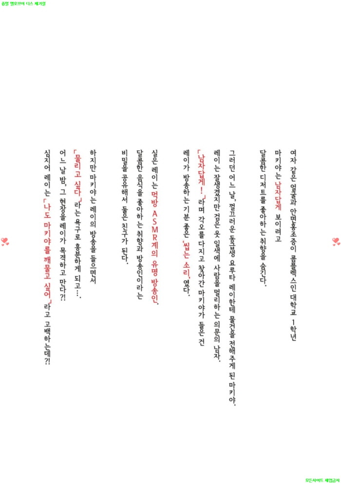 만화 만화 [BL만화] 미츄 - 아름다운 ASMR 군은 깨물고 싶어해 11.25 디스사랑 2026.04.25 4,265 362 다운로드 추천 362 북마크 공유 다운로드 파일 · 1개 [BL만화] 미츄 - 아름다운 ASMR 군은 깨물고 싶어해 FILE 109.3M 다운로드 TAGS #BL만화 #미츄 #아름다운 #ASMR #군은