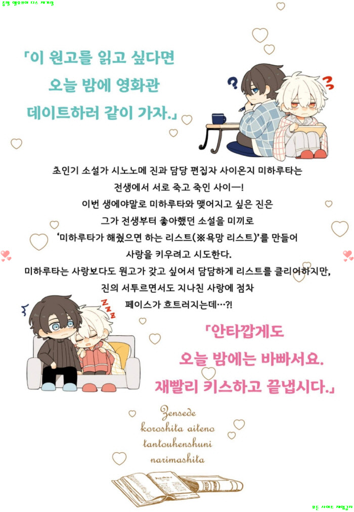 만화 만화 [BL만화] 스즈리마치 - 전생에서 죽인 상대의 담당 편집자가 됐습.. 디스사랑 2026.04.25 7,813 229 다운로드 추천 229 북마크 공유 다운로드 파일 · 1개 [BL만화] 스즈리마치 - 전생에서 죽인 상대의 담당 편집자가 됐습니다 02권 FILE 111.4M 다운로드 TAGS #BL만화 #스즈리마치 #전생에서 #죽인 #상대의