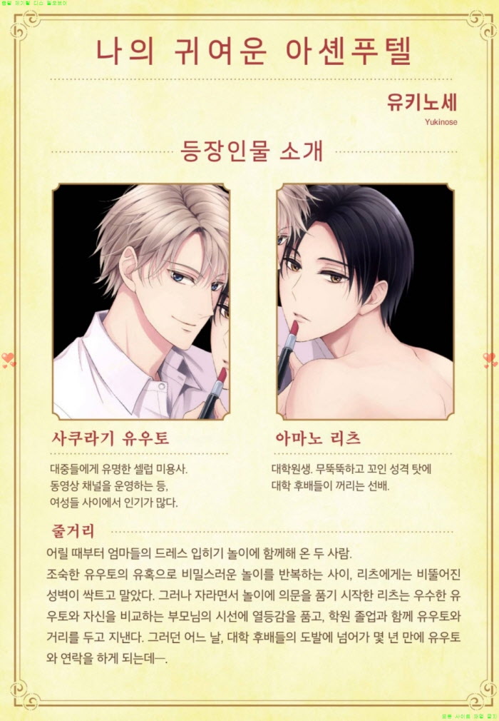 만화 만화 [BL만화] 유키노세 - 나의 귀여운 아셴푸텔 08.05 디스사랑 2026.04.25 4,743 427 다운로드 추천 427 북마크 공유 다운로드 파일 · 1개 [BL만화] 유키노세 - 나의 귀여운 아셴푸텔 FILE 118.8M 다운로드 TAGS #BL만화 #유키노세 #나의 #귀여운 #아셴푸텔