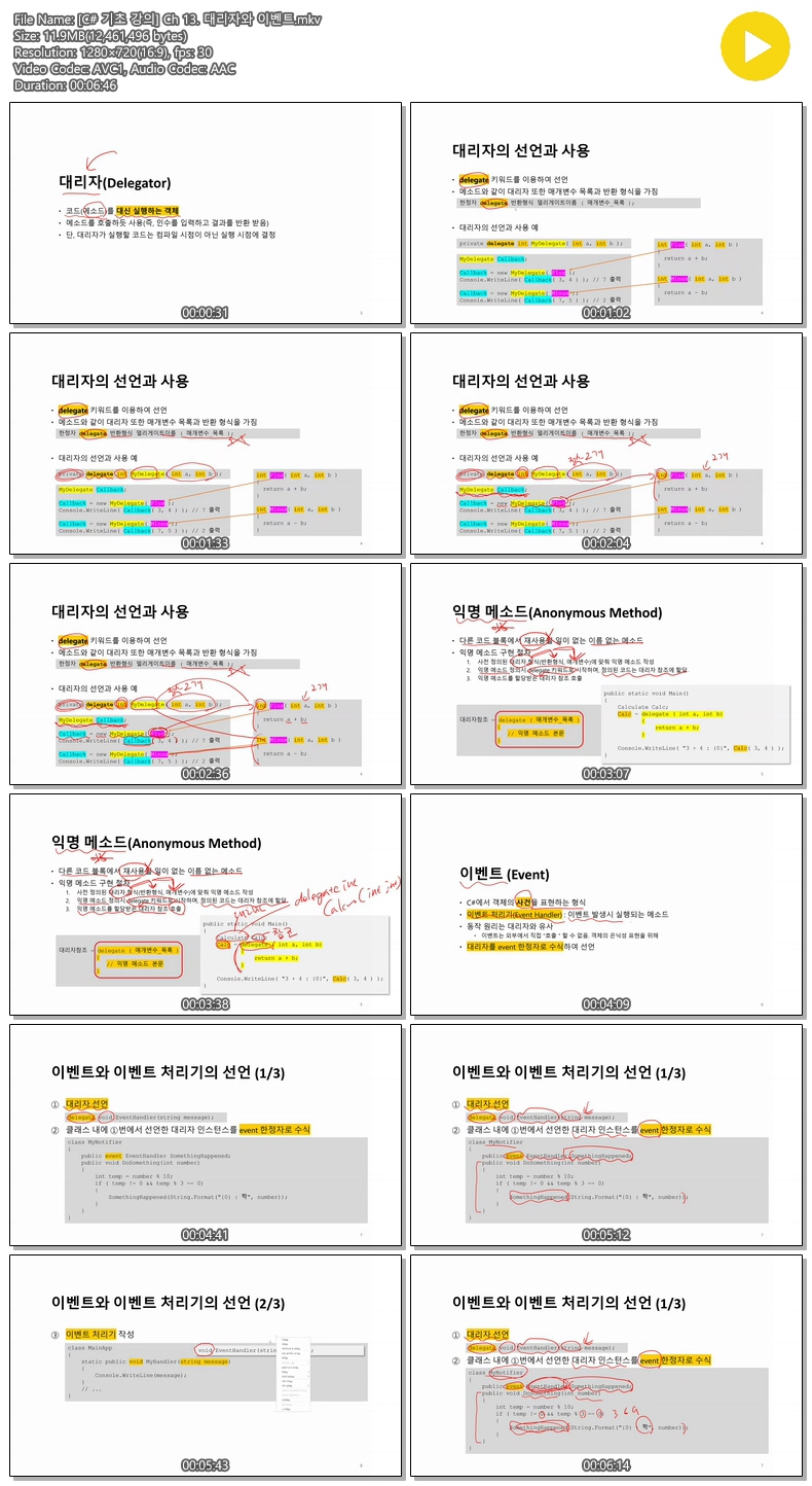 애니메이션 애니메이션 [C 기초 강의] Ch 13. 대리자와 이벤트 jibori 2026.04.24 4,937 487 다운로드 추천 487 북마크 공유 다운로드 파일 · 1개 [C 기초 강의] Ch 13. 대리자와 이벤트.mkv FILE 11.9M 다운로드 TAGS #기초 #강의 #Ch #대리자와 #이벤트