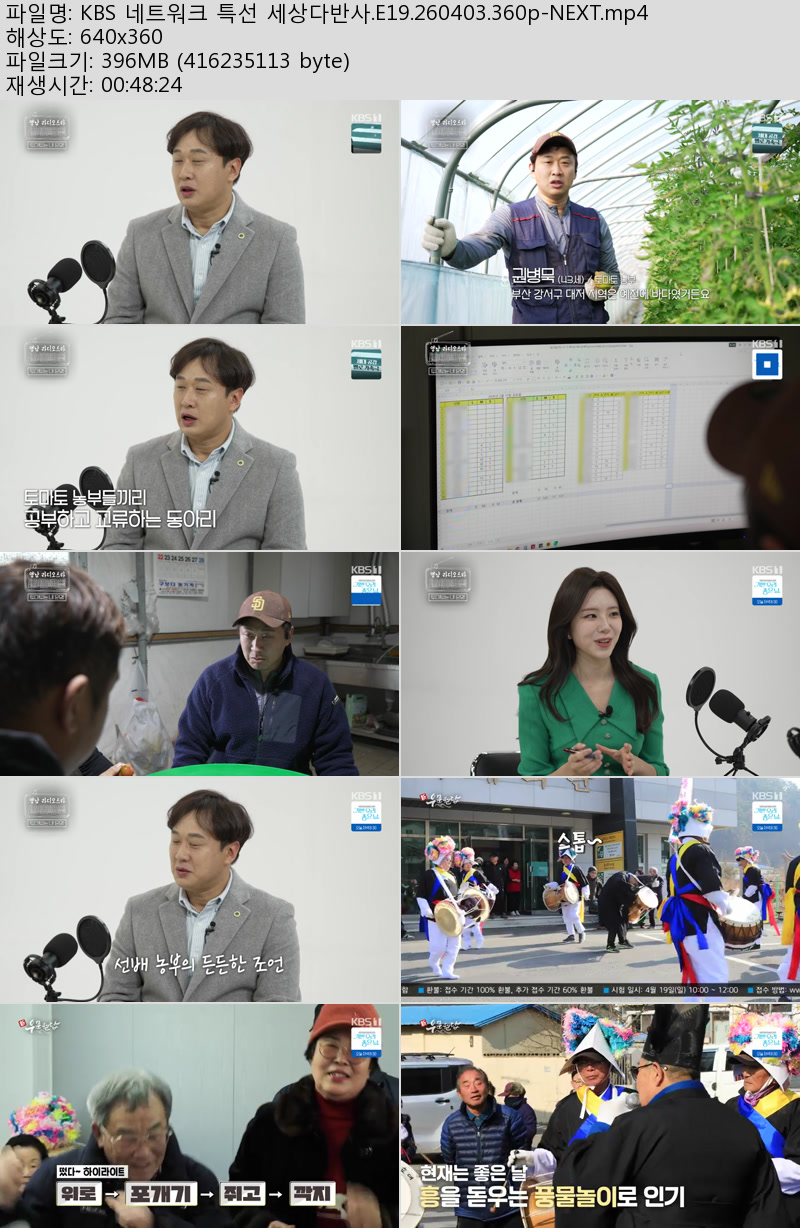 방송/동영상 방송/동영상 KBS 네트워크 특선 세상다반사.E19.260403.360p-NEXT 우야쓰꼬 2026.04.24 5,161 438 다운로드 추천 438 북마크 공유 다운로드 파일 · 1개 KBS 네트워크 특선 세상다반사.E19.260403.360p-NEXT.mp4 FILE 397.0M 다운로드 TAGS #KBS #네트워크 #특선 #세상다반사 #E19