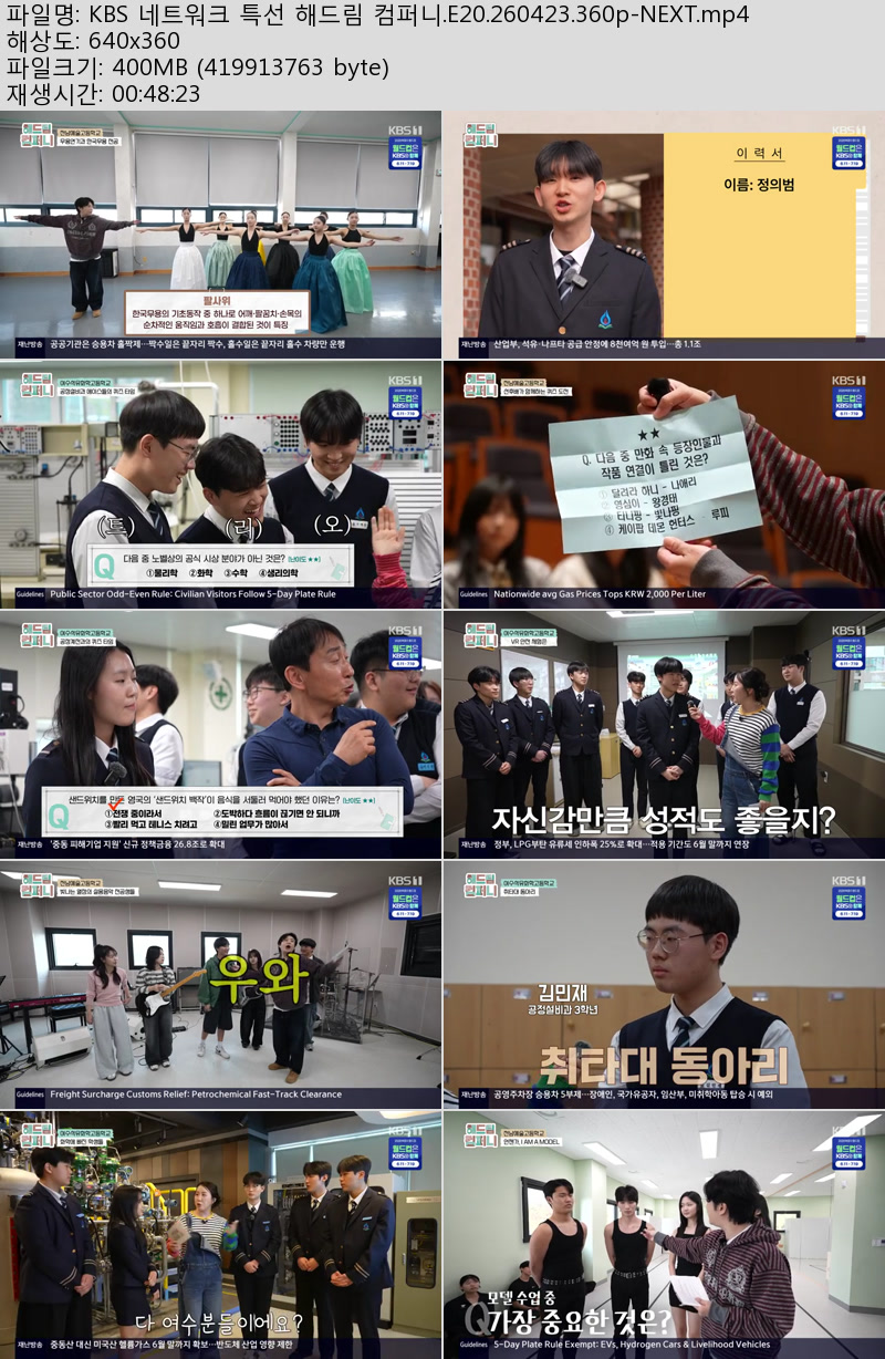 방송/동영상 방송/동영상 KBS 네트워크 특선 해드림 컴퍼니.E20.260423.360p-NEXT 우야쓰꼬 2026.04.23 6,219 257 다운로드 추천 257 북마크 공유 다운로드 파일 · 1개 KBS 네트워크 특선 해드림 컴퍼니.E20.260423.360p-NEXT.mp4 FILE 400.5M 다운로드 TAGS #KBS #네트워크 #특선 #해드림 #컴퍼니