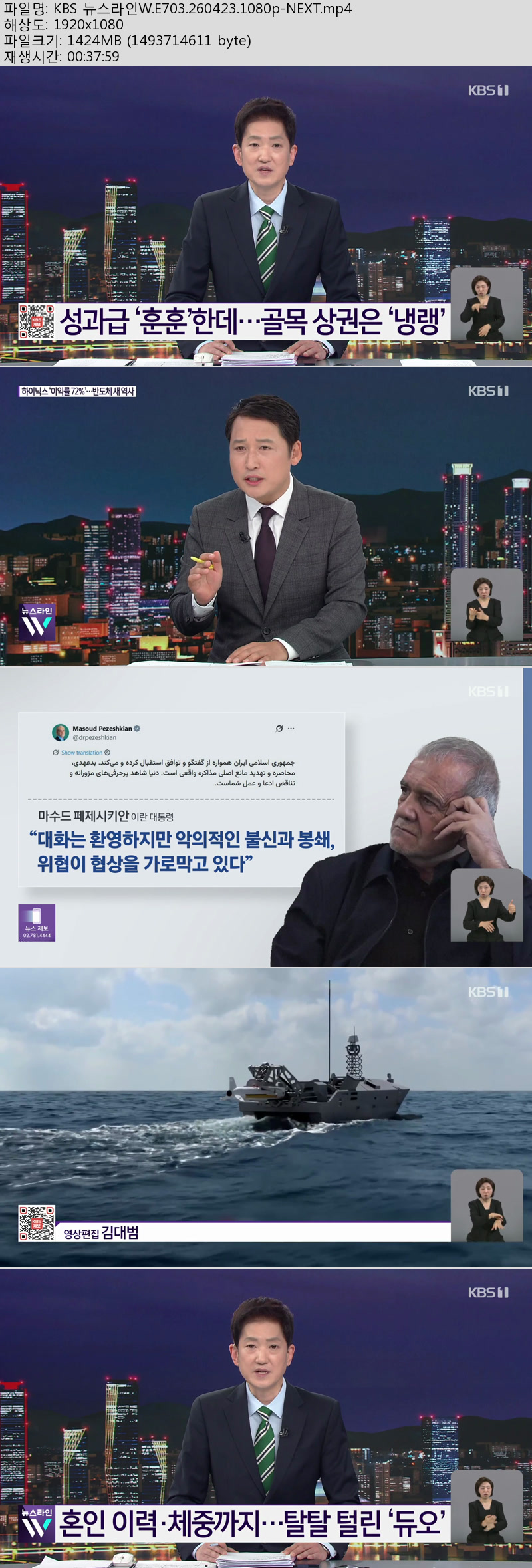 방송/동영상 방송/동영상 KBS 뉴스라인W.E703.260423.1080p-NEXT 에이버 2026.04.23 6,165 340 다운로드 추천 340 북마크 공유 다운로드 파일 · 1개 KBS 뉴스라인W.E703.260423.1080p-NEXT.mp4 FILE 1.4G 다운로드 TAGS #KBS #뉴스라인W #E703 #NEXT