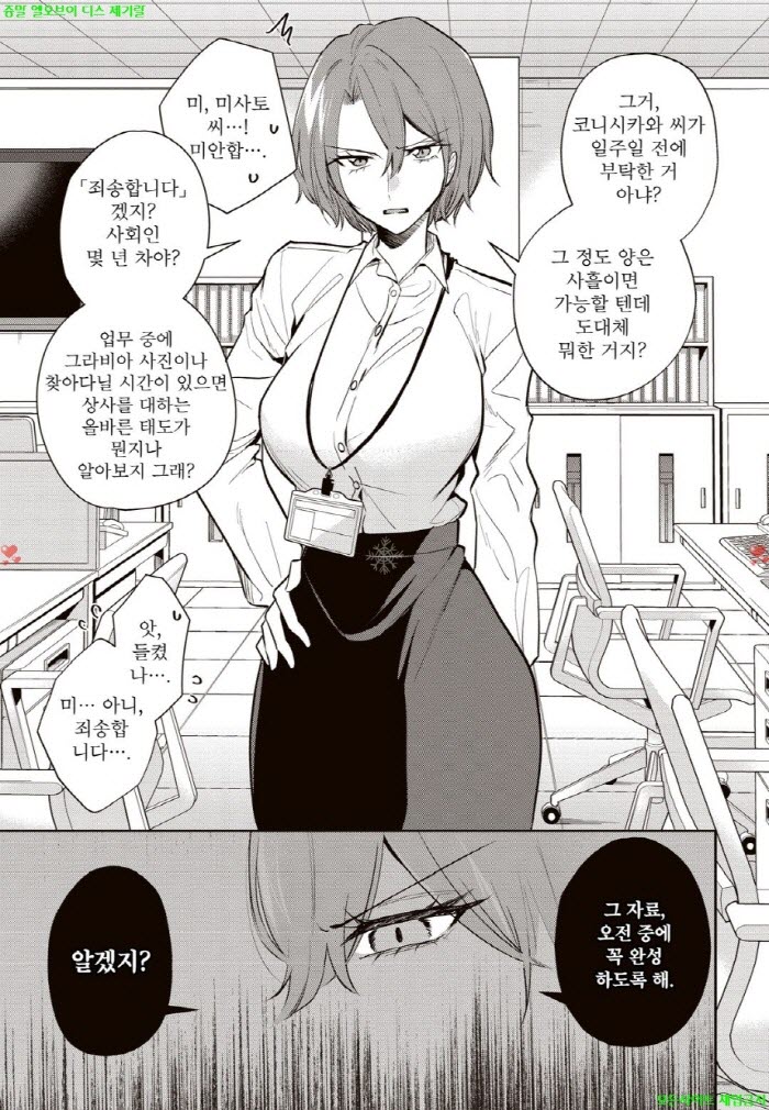 만화 만화 [M] 쿠로타마 - 미사토 씨는 물러터진 상사에게 조금 엄격해 01권 .. 디스사랑 2026.04.25 7,995 457 다운로드 추천 457 북마크 공유 다운로드 파일 · 1개 [M] 쿠로타마 - 미사토 씨는 물러터진 상사에게 조금 엄격해 01권 01-08화 FILE 116.0M 다운로드 TAGS #쿠로타마 #미사토 #씨는 #물러터진 #상사에게