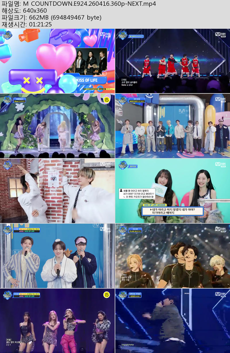 방송/동영상 방송/동영상 M COUNTDOWN.E924.260416.360p-NEXT 우야쓰꼬 2026.04.22 5,105 495 다운로드 추천 495 북마크 공유 다운로드 파일 · 1개 M COUNTDOWN.E924.260416.360p-NEXT.mp4 FILE 662.7M 다운로드 TAGS #COUNTDOWN #E924 #NEXT