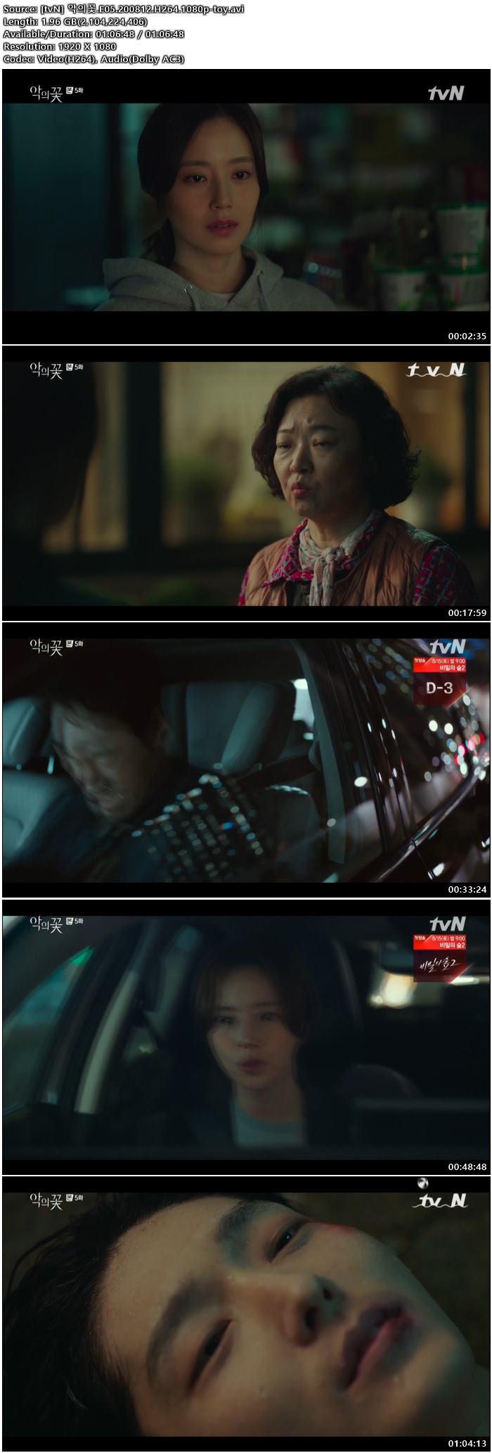 - [tvN] 악의꽃.E05.200812.H264.1080p-toy.avi (2.0G) 다운로드 : 20,577